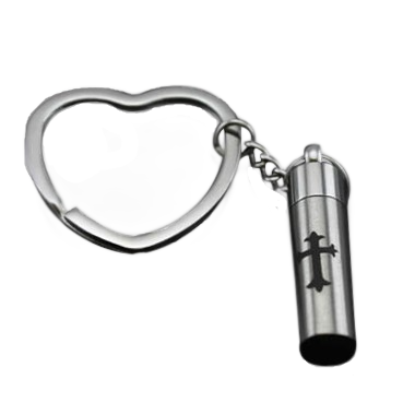 This Cremation Key Chain is made of stainless steel and created by artist jewelers. The quality is incomparable and the craftsmanship outstanding. This Keepsake Key Chain can hold a small amount of the cremation ashes or a piece of hair to memorialize your loved one forever. You can keep your loved one close to you at all times. Includes top opening screw.