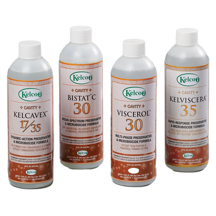This essential bundle offers a convenient way to evaluate four of Kelco’s most trusted cavity treatment formulas. Featuring a range of preservation strengths and microbiocidal actions, this collection is ideal for embalmers looking to assess high-performance solutions for routine and challenging cases alike.