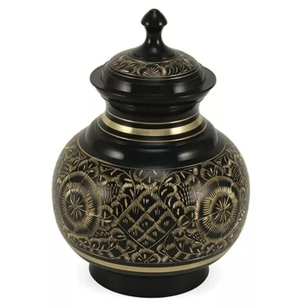 This far-east Golden Aura Cremation Urn is designed carefully to feature a royal radiance look to conserve your precious memories. The urn is made from solid brass and the perfect lacquer coat to preserve its brilliance. It comes with a top opening, a threaded lid, and felt bottom.