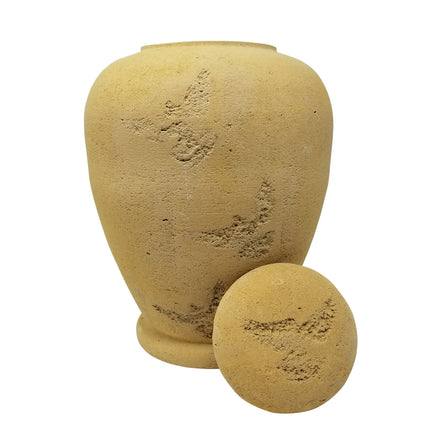 This Flying Birds Natural Sand Biodegradable Urn is beautifully handcrafted by the artisans to give it a smooth decorative look. This urn is suitable for home display, earth, or ocean burial. They will not break down in a display environment. During an ocean burial, the lid will soon lift, allowing the cremains to mingle with the currents.