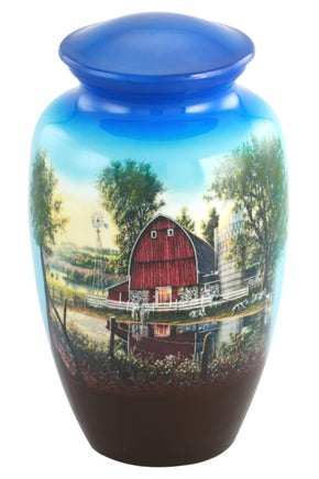 This beautifully handcrafted urn presents the Homestead theme.