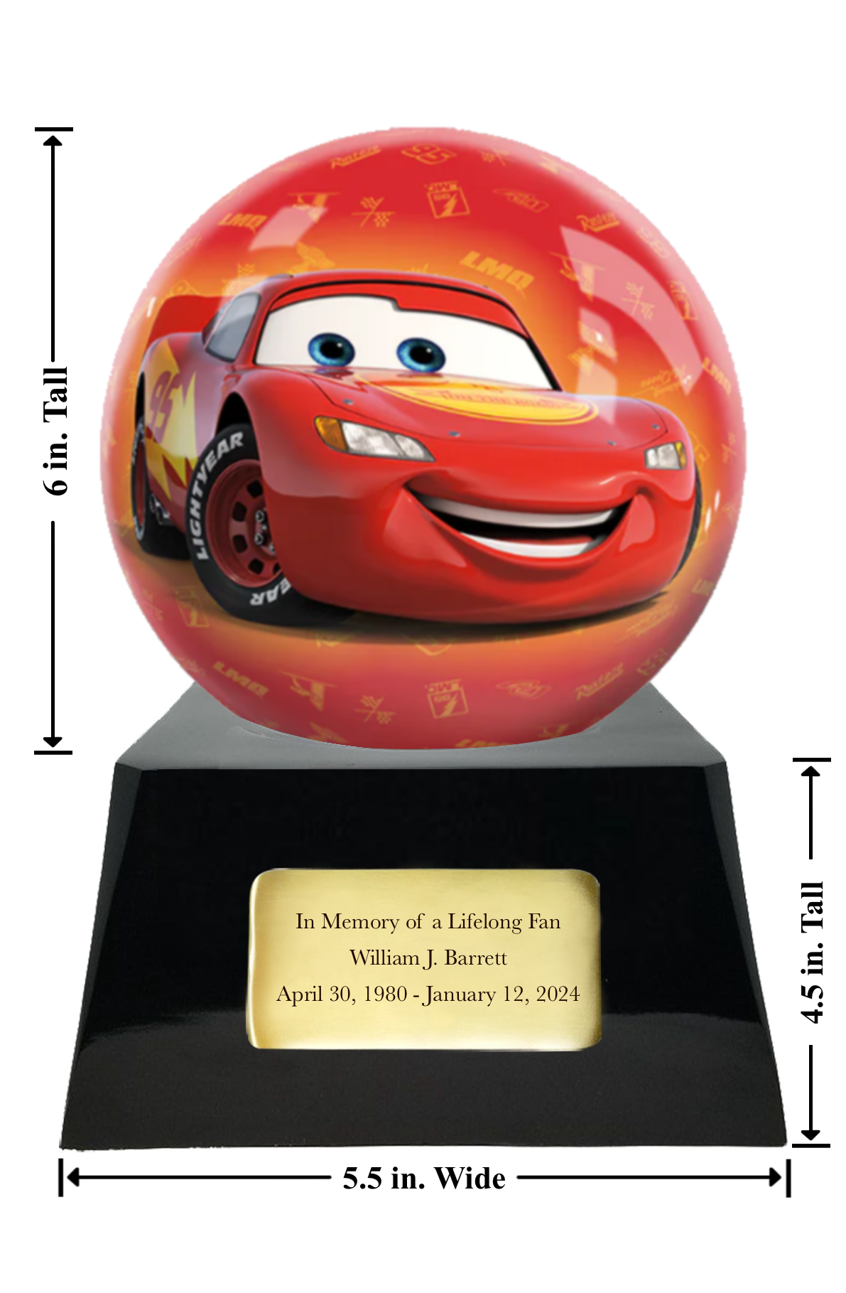 Dimensions: Height (with ball) – 10.5 inches, Base – 5.5 x 3.5 x 4.5", Ball – Approx. 6" tall