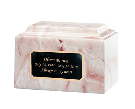 These fine classic shaped urns are made with the best Onyx marble rocks carved and colored to perfection. The range is presented in series of different colors to suit the taste and style of the beholder of the marble memoir.