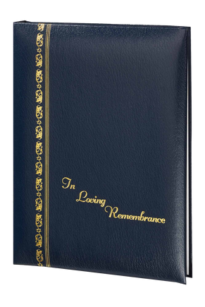 Our Royal Series Funeral Guest Book features a simple and classic design. “In Loving Remembrance” text and a scroll banner are stamped in gold foil. This Royal Series Funeral Guest Book is available in a multitude of colors – Black, Burgundy, Green, Navy Blue, White, and Brown.