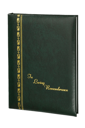 Our Royal Series Funeral Guest Book features a simple and classic design. “In Loving Remembrance” text and a scroll banner are stamped in gold foil. This Royal Series Funeral Guest Book is available in a multitude of colors – Black, Burgundy, Green, Navy Blue, White, and Brown.