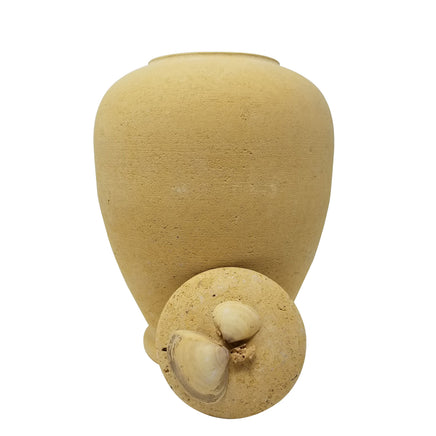 This Sea Shell Natural Sand Biodegradable Urn is beautifully handcrafted by the artisans to give it a smooth decorative look. This urn is suitable for home display, earth, or ocean burial. They will not break down in a display environment. During an ocean burial, the lid will soon lift, allowing the cremains to mingle with the currents.