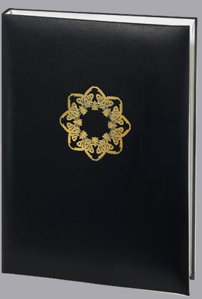 #9200-BK – Victorian Wreath Funeral Guest Book – Black w/ Gold Foil Design – 6 Ring