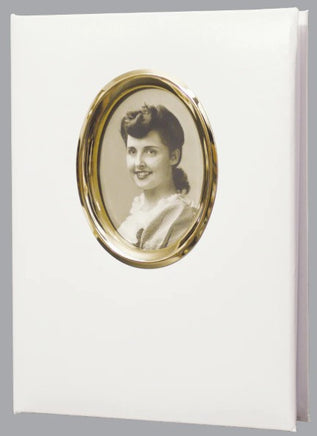 #793 - Oval Frame Padded Funeral Guest Book White – 6 Ring