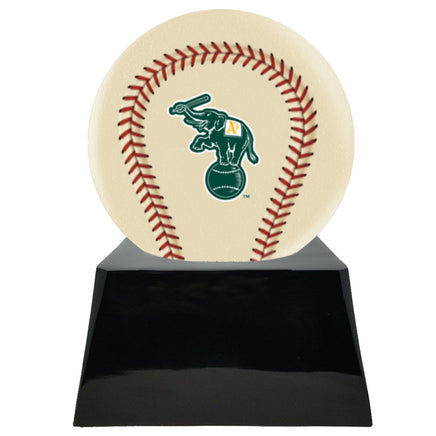 The Baseball Cremation Urn is made of solid metal with a perfect surface lacquer coat to preserve its sheen and brilliance. The MLB team sphere is placed on top of the urn base creating a perfect trophy urn "In memory of a lifelong fan". The urns comes with bottom opening with secured screws to place the ashes.