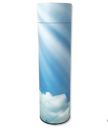 Heavenly Cloud is an elegant and affordable SCATTER TUBE. The urn is made from biodegradable material and finished in a heavenly cloud cover to preserve its beauty. This scatter tube comes with a removable lid and a perforated push tab for easy opening. Made of paper components, this scattering tube urn is quite sturdy for intended use.