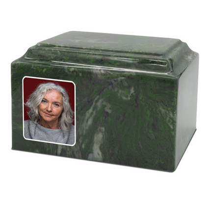 Custom photo printed cultured marble urns. These fine classic shaped urns are made with the best cultured marble rocks carved and colored to perfection. The range is presented in series of different colors to suit the taste and style of the beholder of the marble memoir.