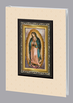 Our Lady of Guadalupe Funeral Guest Book features a beautiful Lady of Guadalupe artwork.