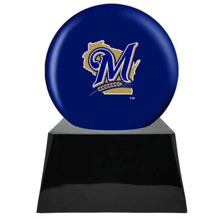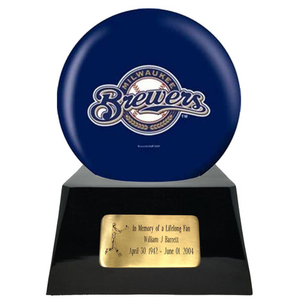 The Baseball Cremation Urn is made of solid metal with a perfect surface lacquer coat to preserve its sheen and brilliance. The MLB team sphere is placed on top of the urn base creating a perfect trophy urn "In memory of a lifelong fan". The urns comes with bottom opening with secured screws to place the ashes.