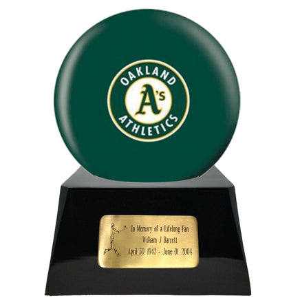The Baseball Cremation Urn is made of solid metal with a perfect surface lacquer coat to preserve its sheen and brilliance. The MLB team sphere is placed on top of the urn base creating a perfect trophy urn "In memory of a lifelong fan". The urns comes with bottom opening with secured screws to place the ashes.