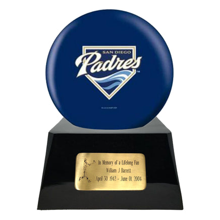 The Baseball Cremation Urn is made of solid metal with a perfect surface lacquer coat to preserve its sheen and brilliance. The MLB team sphere is placed on top of the urn base creating a perfect trophy urn "In memory of a lifelong fan". The urns comes with bottom opening with secured screws to place the ashes.