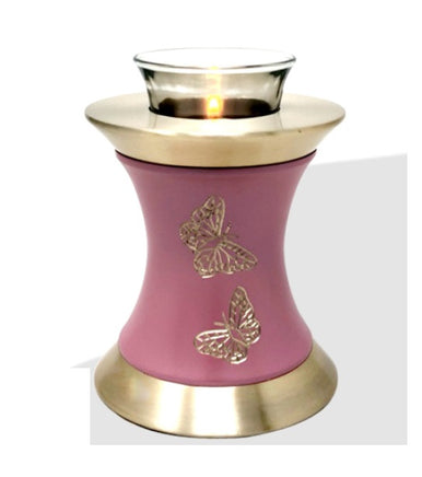 Infinityurn’s Butterfly is an elegant and affordable Tea Light SMALL CREMATION URN. The Tealight urn is made from solid Brass and the perfect lacquer coat to preserve its brilliance. It comes with a top opening, a threaded lid for ashes, and a small candle holding space.