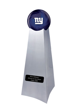 The Football Cremation Urn is made of solid metal with a perfect surface lacquer coat to preserve its sheen and brilliance. The NY Giants team sphere is placed on top of the urn base creating a perfect trophy urn "In memory of a lifelong fan". The urns comes with bottom opening with secured screws to place the ashes.