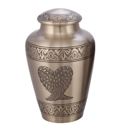 This Classic Pewter Cremation Urn is designed carefully to feature a classic timeless look to conserve your precious memories. The urn is made from solid brass and the perfect lacquer coat to preserve its brilliance. It features hand-carved bands that symbolize eternity. It comes with a top opening, a threaded lid, and felt bottom.
