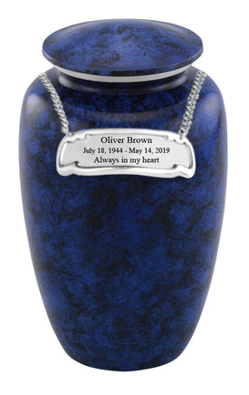his Classic Value Navy Urn is a Genuine Hand-crafted product ensuring each urn is UNIQUE and DURABLE, as well as ECONOMIC. Classic Value Navy Urn fits the remains of most adults weighing up to 200 lbs. The urn is made from solid metal and the perfect lacquer coat to preserve its brilliance. It comes with top opening with a threaded lid and felt bottom.