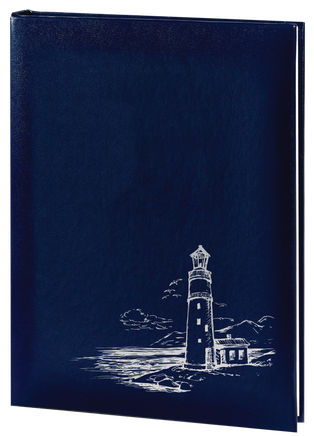 Our Lighthouse Funeral Guest Book offers an artistic Lighthouse design. This timeless book comes in silver artwork design on a Blue cover stock.