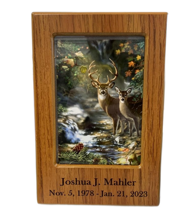 Our high quality MDF photo frame urns are a perfect memorializing urn for your loved one. The urn offers a photo slot for the loved one or any other picture that the family choose. Any standard 6x4 picture fits perfectly in the photo slot.