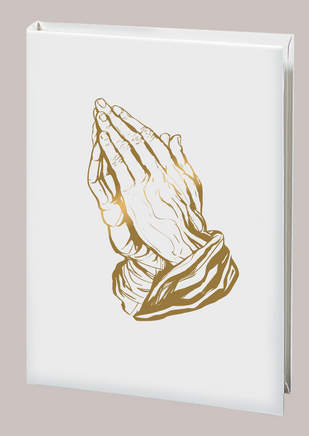 Our Praying Hand Funeral Guest Book offers an artistic Praying Hand design. This timeless book comes in gold foil design on a white cover stock.