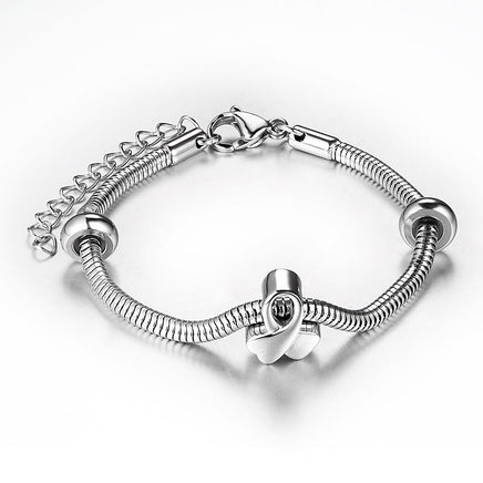 This Bead Cremation bracelet is made of stainless steel and created by skillful jewelers. The quality is incomparable and the craftsmanship outstanding. This bead bracelet can hold a small amount of the cremation ashes or a piece of hair to memorialize your loved one forever. You can keep your loved one close to you at all times.