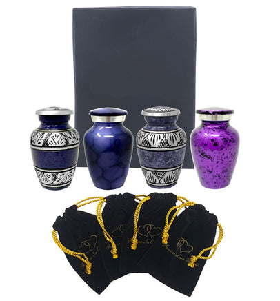 Set of 4 Assorted Purple Alloy Cremation Keepsakes