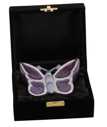 Soulful Wings Butterfly Adult Cremation Urn for Human ashes. The urn is made from metal, and comes with a bottom opening. It fits the remains of most adults weight up to 210 lbs.