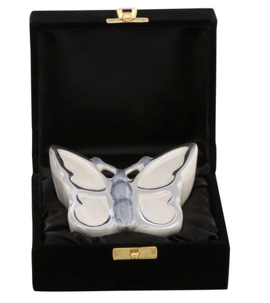 Soulful Wings Butterfly Adult Cremation Urn for Human ashes. The urn is made from metal, and comes with a bottom opening. It fits the remains of most adults weight up to 210 lbs.
