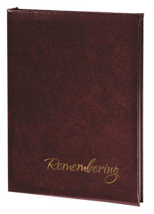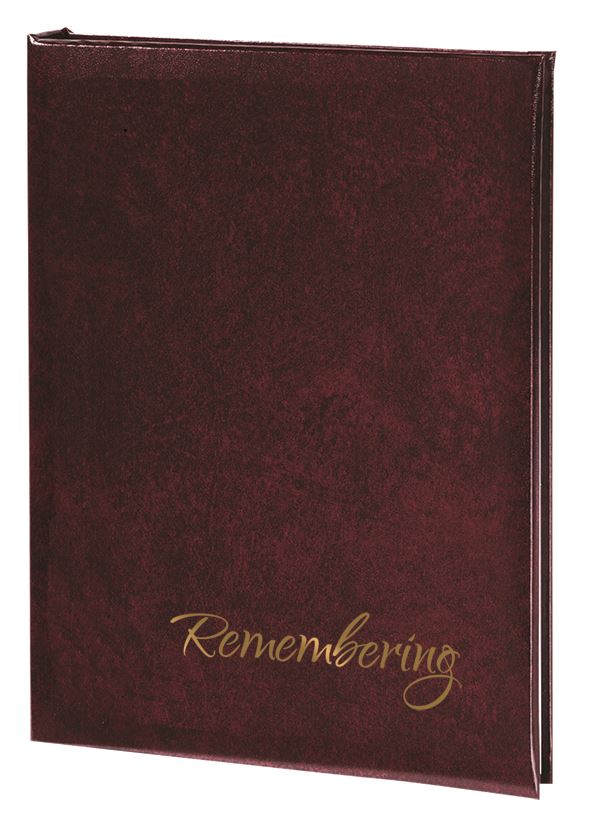 Our Value Series Funeral Guest Book features a simple and classic design. “Remembering” text is stamped in gold foil. This Value Series Funeral Guest Book is available in a multitude of colors – Black, Burgundy, Green, Navy Blue and White.