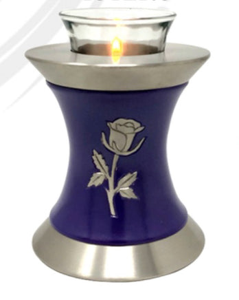 Infinityurn’s Wings to Eternity Rose is an elegant and affordable Tea Light SMALL CREMATION URN. The Tealight urn is made from solid Brass and the perfect lacquer coat to preserve its brilliance. It comes with a top opening, a threaded lid for ashes, and a small candle holding space.