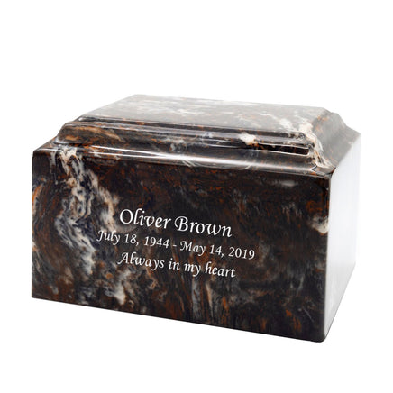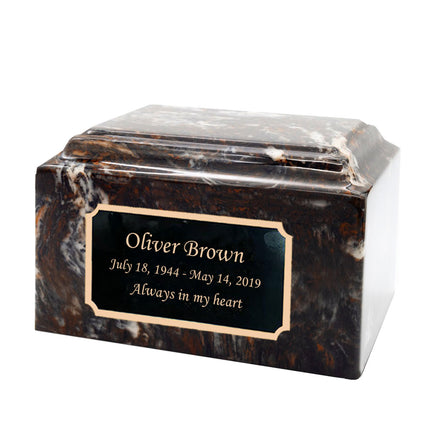 These fine classic shaped urns are made with the best cultured marble rocks carved and colored to perfection. The range is presented in series of different colors to suit the taste and style of the beholder of the marble memoir.