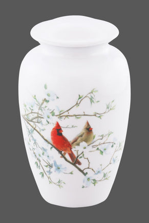 This beautifully handcrafted urn presents the Wild Cardinals theme.