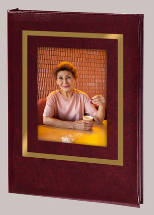 Our Thick Border Rectangle Photo Funeral Guest Book is a simple, yet classic guest book design. This guest book features a rectangular window bordered by a gold foil frame. The window serves as a display for a standard 4”x6” photograph which slides into a secure pocket on the inside cover of the guest book. The Rectangle Photo Funeral Guest Book would be the perfect choice for those looking to display an image of their loved one.