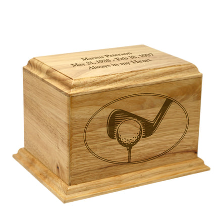 Aesthetically designed and engraved rubberwood cremation urn that relates to the departed soul. This urn is a beautiful way to memorialize your loved one with a particular interest in the outdoors or sports. The options on this urn are endless, custom designs are available on request.